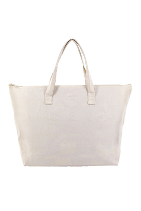 Heavyweight. Zippered closure. Interior zippered pocket. Self-fabric handles Length: 23.5"; Drop Handle Length: 7"; Handle Width: Widest Part: 1.25"/Slimmest Part: 0.5". Suggested Imprint: 15"W x 8"H. Non-branded label/tag.