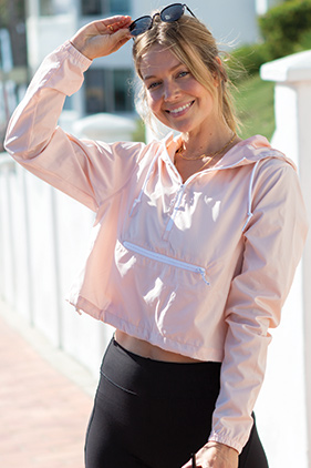 Lightweight pullover crop windbreaker styled for a fun, active lifestyle.