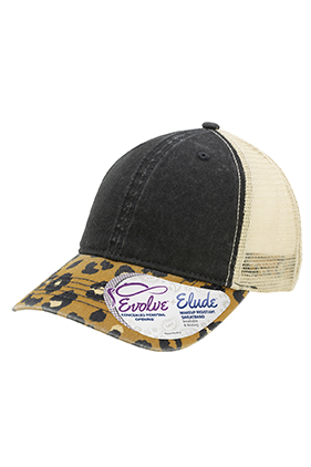 Front: 100% cotton, pigment-washed twill. Back: 100% polyester washed soft mesh. Elude™ makeup resistant, breathable, wicking sweatband.