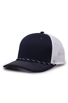 Structured. Six-panel. Mid-profile with rope. Slightly-curved contrast stitch visor. Performance sweatband. Snapback closure.