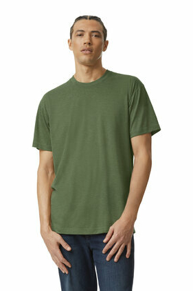 4 oz. (136g), 50/25/25 polyester/combed ring-spun cotton/rayon, triblend jersey. Made with OEKO-TEX certified low-impact dyes. Proud Better Cotton™ member.