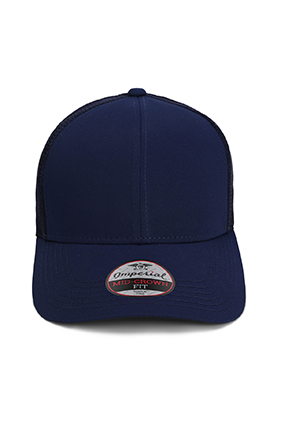 Structured. Six-panel. Mid-profile. Pre-curved bill. Imperial woven label by black rubberized hook and loop closure.