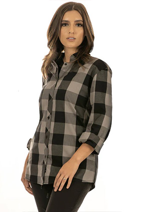 B5203 Burnside Camisa a cuadros de búfalo de manga larga para mujer