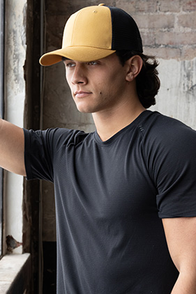 Parte trasera de malla 100 % poliéster. Banda absorbente Coolmax™. Hecho en México.