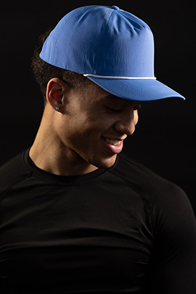 Sin estructura, con protección contra el viento de malla vertical. Cinco paneles. Perfil medio con cuerda. Varillas de malla vertical. Visera ligeramente curvada. Ajuste clásico. Correa ajustable de nailon con hebilla de clip.