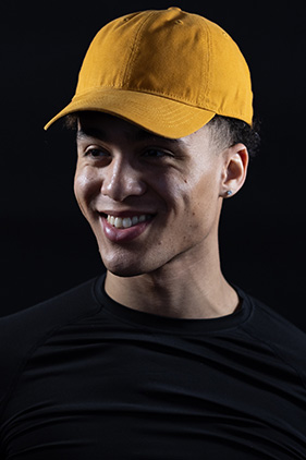 Sin estructura. Seis paneles. Perfil bajo. Visera precurvada. Lona cepillada: visera negra. Sarga de chino: visera color piedra. Lavado antiguo: visera a juego. Teñido con pigmentos: visera negra o azul marino. Cierre Tri-Glide.