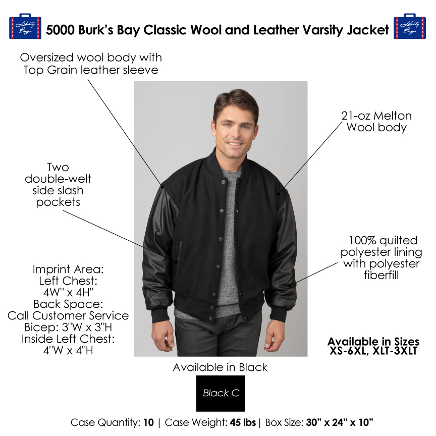 New 5000 Liberty Bags Burk's Bay Chaqueta universitaria clásica de lana y cuero